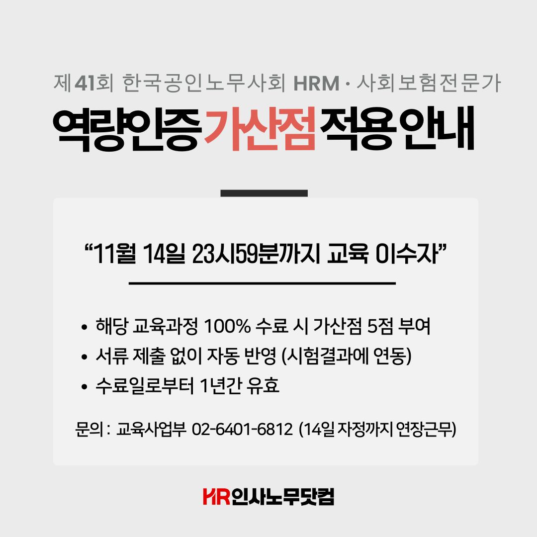 79  [오프라인 특강 사전안내] HRM·사회보험 역량인증 자격시험 실전대비 클래스 관리자 2025-06-12 2029