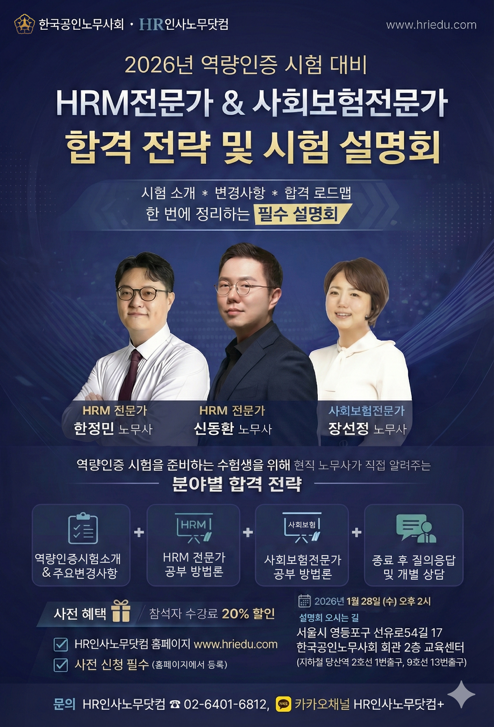 제목 [2026 역량인증 대비] HRM전문가 & 사회보험전문가 합격 전략 및 시험 설명회